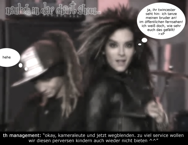 Bill: „Ano, twincest-fans, podívejte se: tančím u svého bratra! ve veřejném vysílání ! já přece vím, jak se vám to líbí!“ >xP