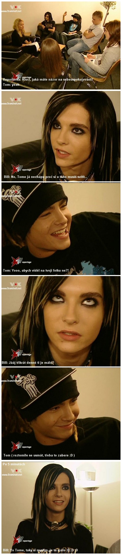 Twe..tohle si pamatuju,jak jsem to comentovala..a nejni tu..toe divný..ale jako..ty Billíškovi protočený oči..nádheraa..Ehmm mi ti jako Tome věříme,že s fotkou brášky je to daleko lepší..ale my narozdíl tebe máme fakt jenom ty fotky xD xD rhmmm