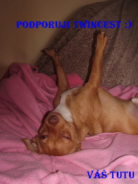 TUTU Posted on 27. 4. 2009 by Janule Ahojky, posílám fotku našeho pejska.. xDD On mi spinkal v županu, a když jsem se ho zeptala, jak moc má rád twincest, převalil se takhle na záda a takhle moc roztáhnul přední tlapičky… 😀 Musela jsem vám to poslat.. 😀 Ivetka Počet zobrazení (od 15.6.2021): 6