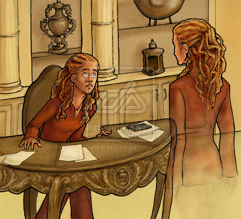 „Jděte pryč, teď mě nerušte,“ vyštěkl a pokračoval v práci. Ozvalo se další zaťukání a Tom byl nepříčetný. Jak se někdo opovažuje ťukat na dveře od jeho Slunečního Pokoje bez dovolení? Sluhové Domu věděli, že nesmí, a jeho rodiče by ťukali pomocí magie, a on by je pustil dovnitř. Ťukání pokračovalo a Tom byl rozčilený, že se musí zvednout ze židle, aby přišel na to, kdo je ten narušitel, a kdo bude zbičován až do bezvědomí.