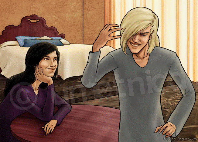 Billovi se v krku zadrhl dech, když si uvědomil, že Raphael se musel zmínit o tom, co mu Bill řekl. Měl pocit, že byl dost diskrétní; hodný podezření, to ano, ale on přeci neřekl jméno. Mohl držet smutek za příbuzného, to je to, co si mohl Raphael myslet, alespoň Bill si to tak myslel. Ale jestli Raphael mluvil o této věci se svým chotěm, když mu to připadalo hodné takové pozornosti, a jeho manžel dokázal Billovu situaci měřit se situací vlastní…