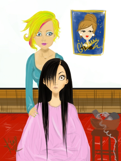 Znovu se zasmála. „Samozřejmě. No, tak se zvedni, dáme se do práce.“ Poklepala mu na rameno, svázala mu vlasy do ručníku a posadila si ho před zrcadla do vysoké židle. Přes tělo mu přehodila plášť a zavázala mu ho za krkem. Do vlasů mu dala tužidlo, které Billovi připomínalo mořskou pěnu, která se tvořila po každé bouřce na pláži, a usmál se. Když mu ale začala vlasy rozčesávat, úsměv ho přešel, bolelo to. Nakonec ale došla až do konce a položila mu ruku na ruku. „Tak a jdeme stříhat, co bys řekl tak na nějakou extravaganci?“