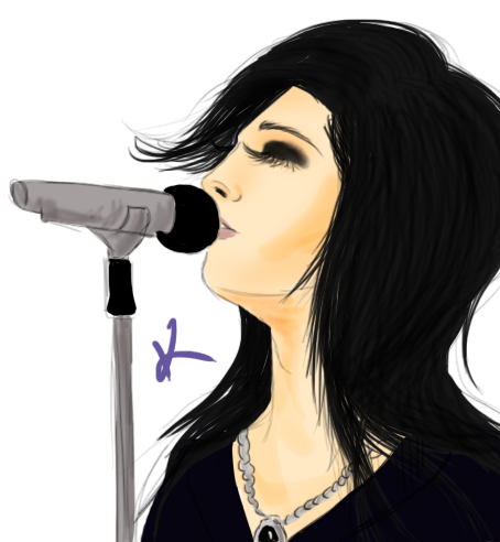 „Mlč!“ vytáhla ho na podium, kapela měla zrovna přestávku na občerstvení. Namísto toho byl na podiu přistavěn přístroj na karaoke, nikdo ale nezpíval, protože se lidi styděli¨, a tak se zrzka ujala mikrofonu stojícího uprostřed, odkašlala si. „Ehm, slyšíte mě všichni dobře?“ mikrofon trochu zapískal, usmála se. „A-Ahoj… Především, vážně skvělá party, Tome!“ usmála se znovu, doširoka. „Jelikož jsem právě zjistila, že tady Bill naprosto nádherně zpívá, jak mi řekl, zpíval na několika koncertech!“ publikum které se nahromadilo před podiem, zajásalo. „No tak, ukažte mu, že chceme, aby nám zazpíval!“ vzala Billa a postavila ho násilím před stojan, Bill byl bledý, nejistě si kousal ret. Dav lidí ale pulzoval, všichni volali ‚Bill, Bill‘.